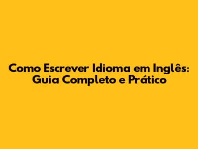 Como Escrever 'Idioma' Em Inglês: Guia Completo E Prático