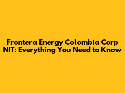 Frontera Energy Colombia Corp NIT: Everything You Need To Know
