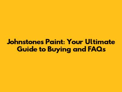 Johnstone's Paint: Everything You Need To Know