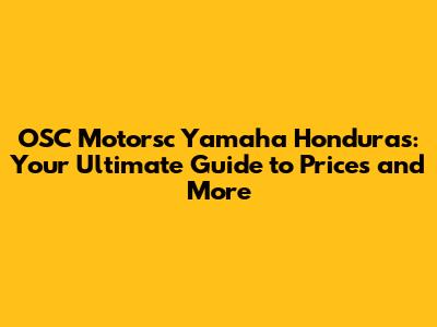 OSC Motorsc Yamaha Honduras: Your Guide To Prices