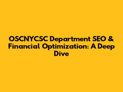 OSCNYCSC Department SEO & Financial Optimization