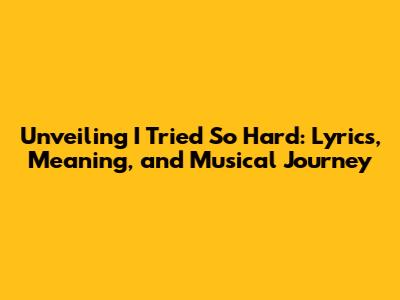 Unveiling 'I Tried So Hard': Lyrics, Meaning, And Musical Journey